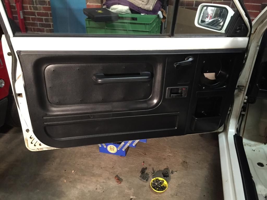 Passenger door finished. We're leaving the speaker grilles off as ours were ruined by having aftermarket speakers drilled into them.