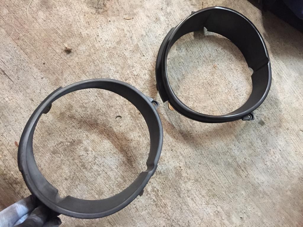 Headlight surround on the right has a coat of VHT Roll Bar & Chassis black, left one is ready to be painted.