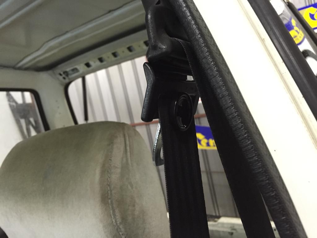 Added a button to each seatbelt so we don't have to go fishing around for the buckle every time.
